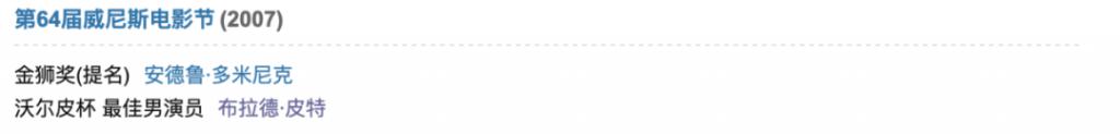 皮特凭借《神枪手之死》在威尼斯封影帝。