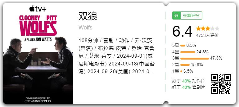 要知道,在《双狼》两亿美元的投资成本中,皮特和克鲁尼各自的片酬就达到 3500 万美元。
