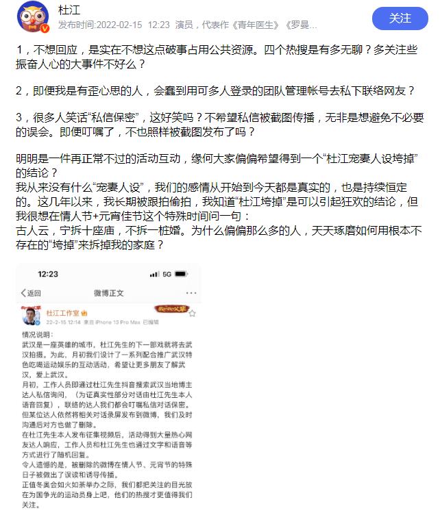 杜江第一时间在平台上做出了澄清,表示和霍思燕的感情都是真实的,希望大家不要总想着去拆散他的家庭。