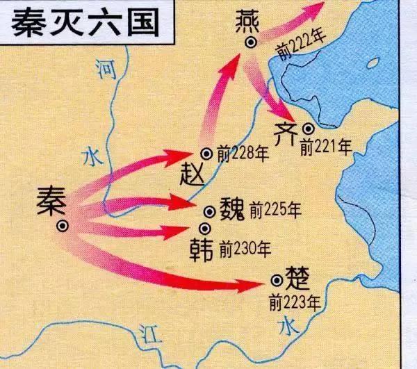 秦国在公元前230-221年的九年时间里发动了多次的大规模战争,到公元前221年齐国向秦国投降,战国七雄中的六雄正式被秦国所灭!也就是秦国的国土面积就是之前六国加上自己本来的国土面积。