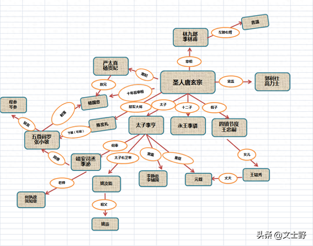 最近,《长安十二时辰》火得不要不要的,连老婆都跟着追剧,可是作为历史小白的她,剧情中许多人物设定以及背景都不是很了解,为了能让她安心追剧,我整了一张关系图给她,并把一些主要人物的历史原型做了一些简介。