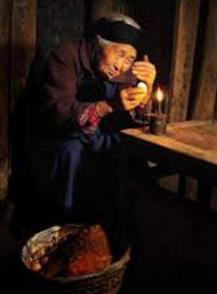 晚上天黑了,劳作一天的貧苦人家,才点上油燈,在油灯下缝缝补补,检查农具,直到乏困才睡觉。