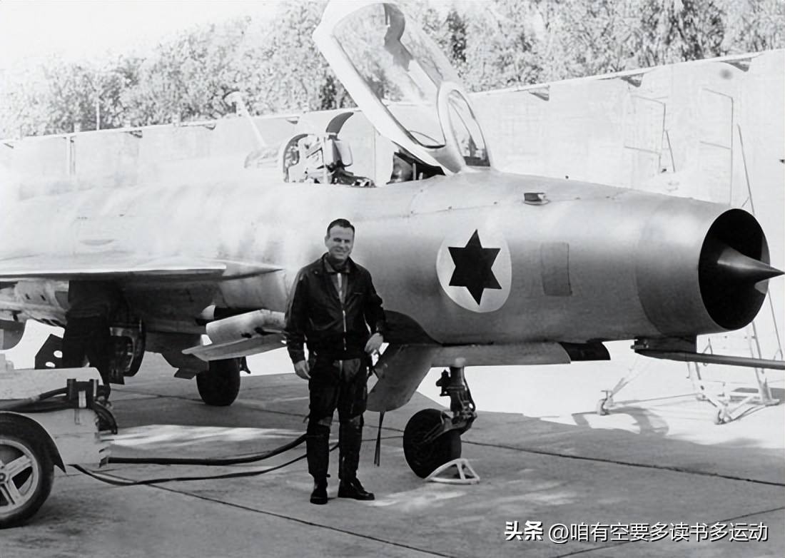 带有以色列徽章的米格,试飞员加里·夏皮拉 (Gary Shapira) 站在它旁边。