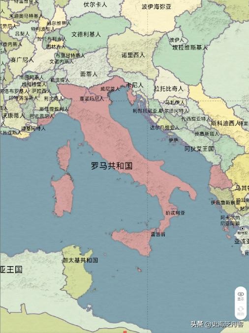 罗马建国初为小国,后战胜拉丁同盟、伊特拉斯坎人等,征服意大利半岛南部土著和希腊城邦,成为地中海西部大国。发动布匿战争征服迦太基,马其顿战争控制希腊,通过叙利亚战争和外交手段控制西亚部分地区,建成横跨亚非欧、称霸地中海的大国。