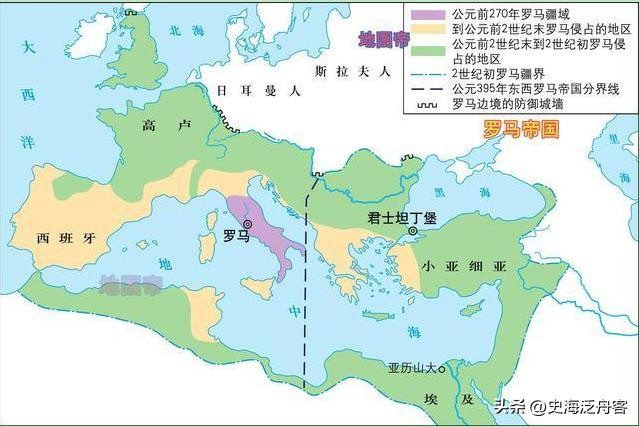 然而,盛极而衰,公元395年,罗马帝国一分为二,东西两部各自为政。