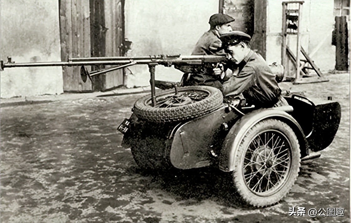 此外,带有挎斗的德国摩托车是一个作战单位。通常,挎斗上有一名机枪手,配有一挺MG-34轻机枪,它可以在移动和进攻方向上开火。