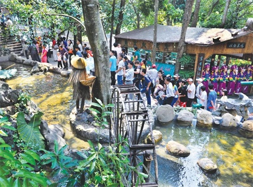 △潺潺流水的伊岭岩民俗长廊,吸引了无数的游客。/《武鸣百年图籍》