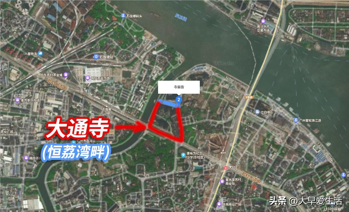 今天的广州,已经找不到大通寺的遗迹,寺庙旧址上,现在是一个名叫“恒荔湾畔”的小区。