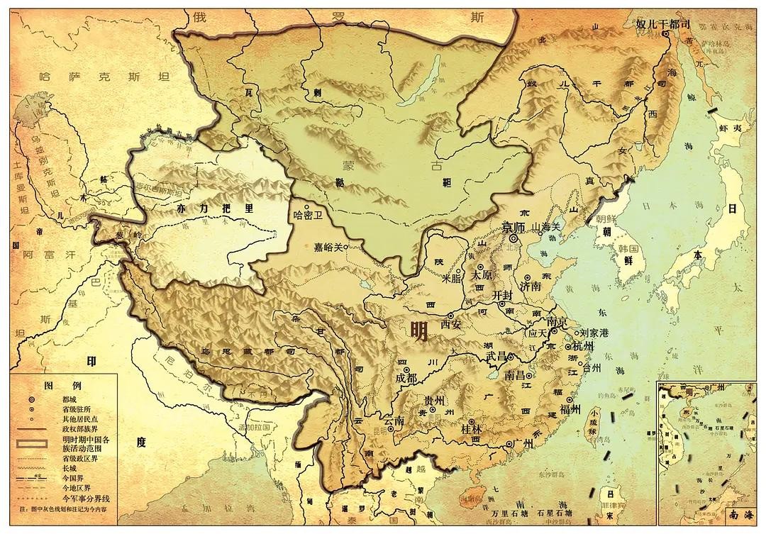 明朝(1368年—1644年):明朝疆域基本恢复了汉唐时期的华夏核心区域,后期逐渐失去了对东北女真部族(后来的满洲)的控制。