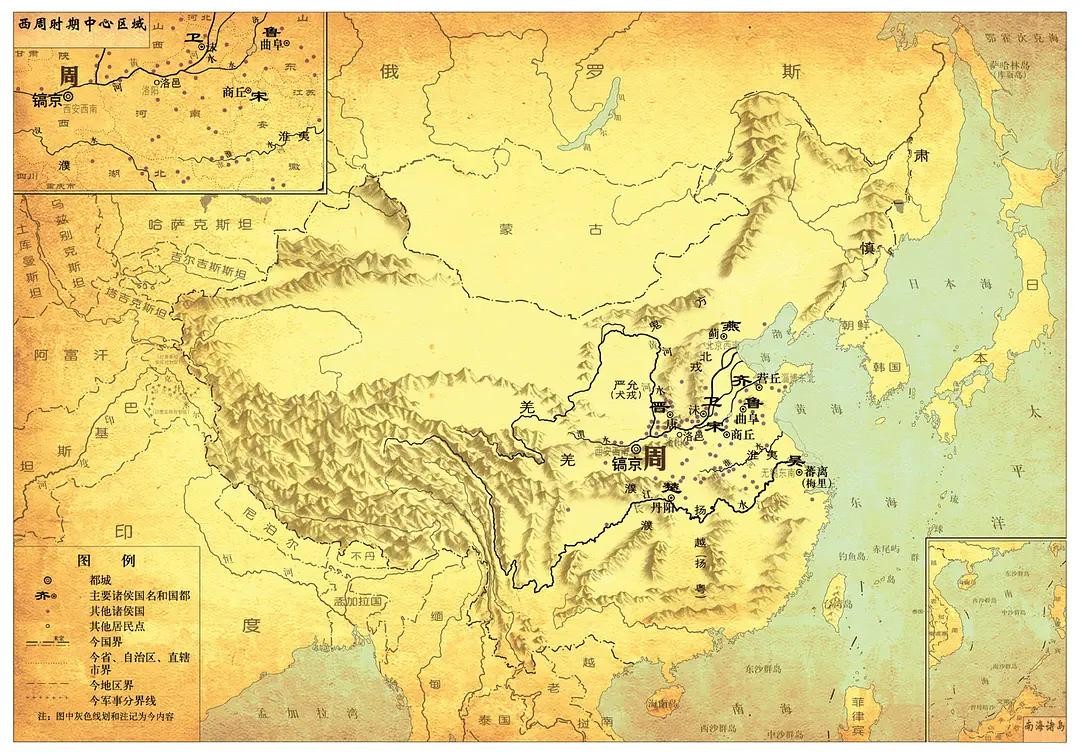 周朝(约前1046年—前256年):周初的疆域经武王伐纣后,控制地域扩大,西周时期确立封建制度,版图拓展到了黄河、长江流域的广大区域。至东周春秋战国时期,诸侯割据,疆界变动频繁。