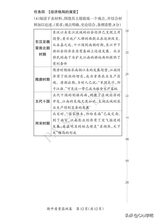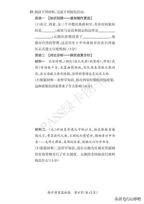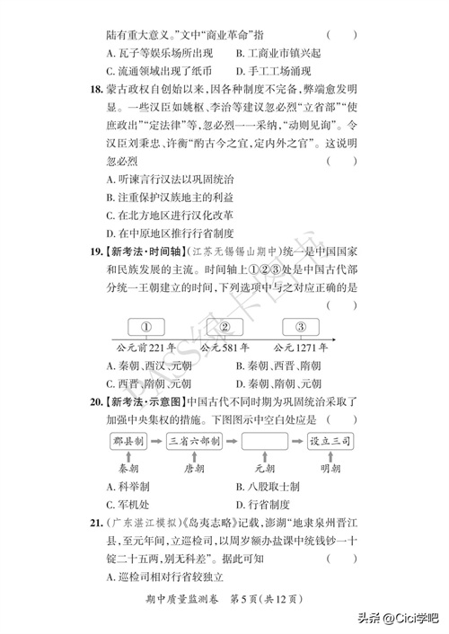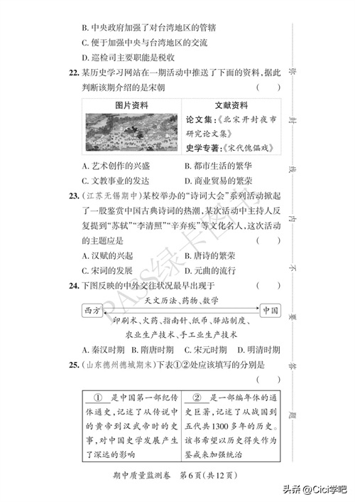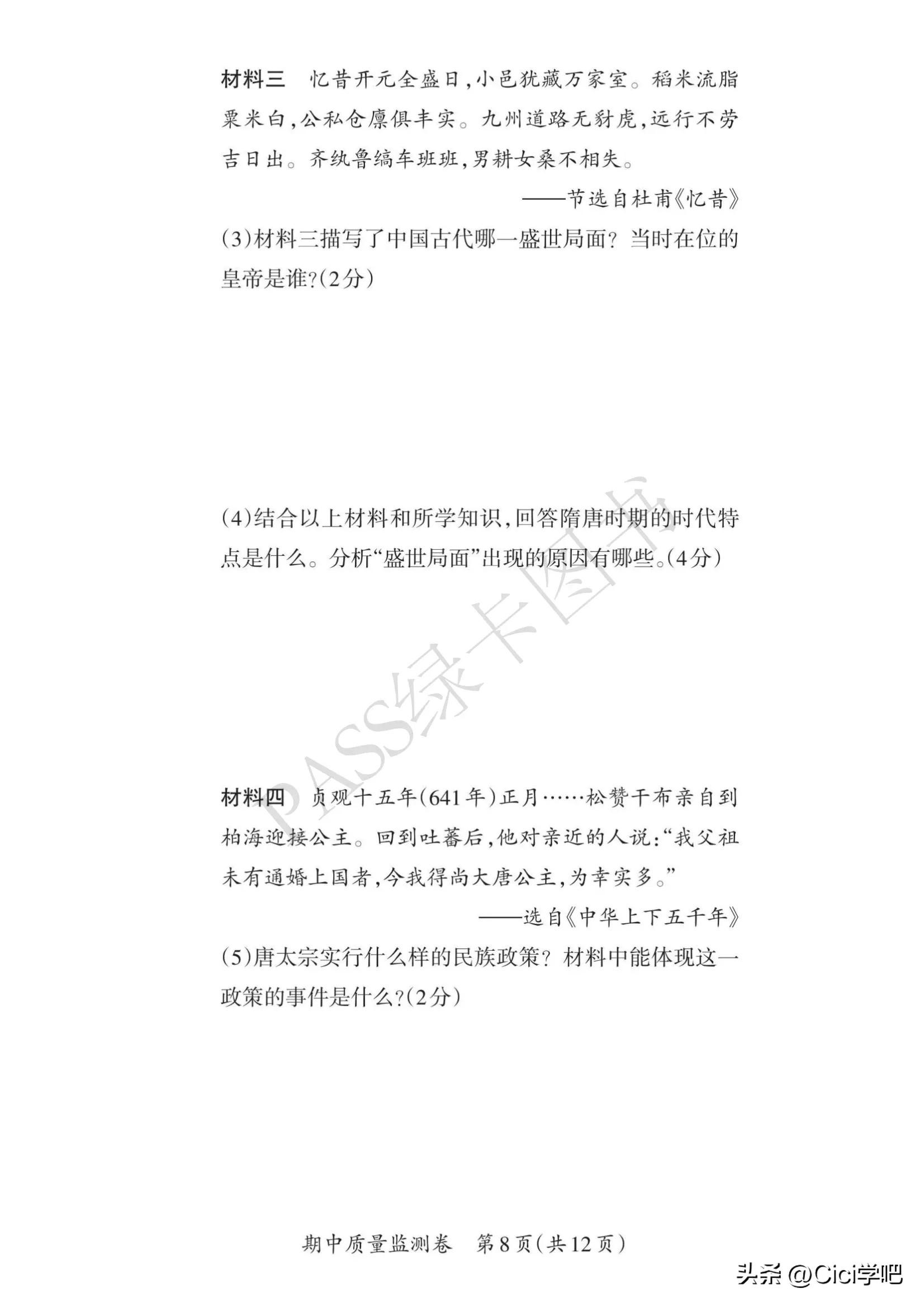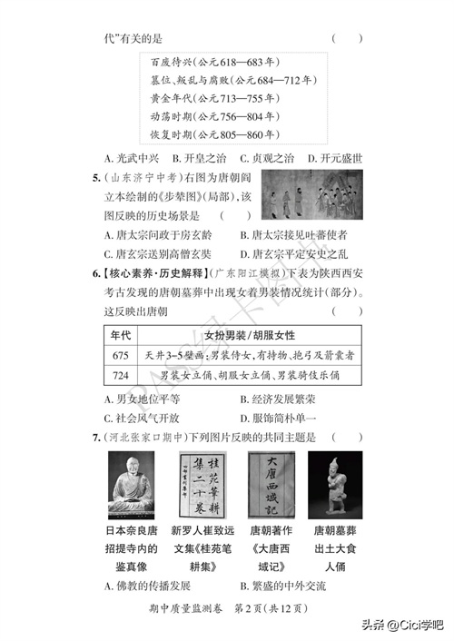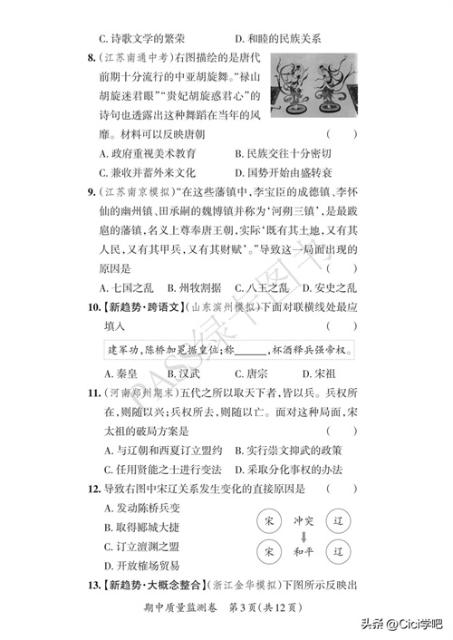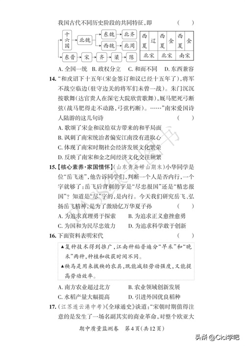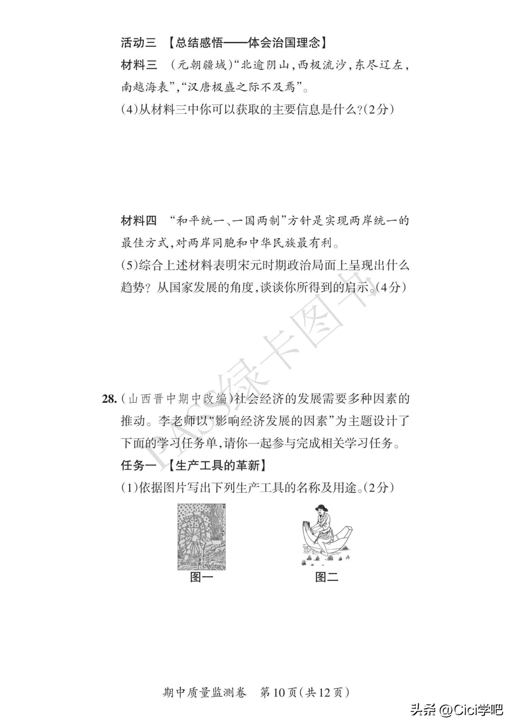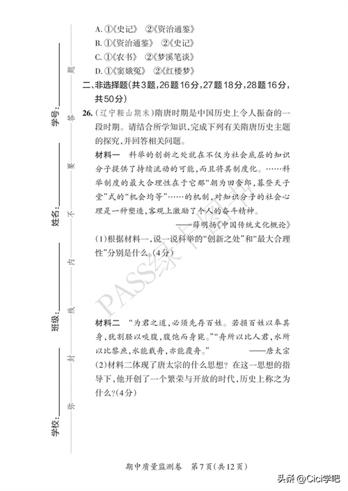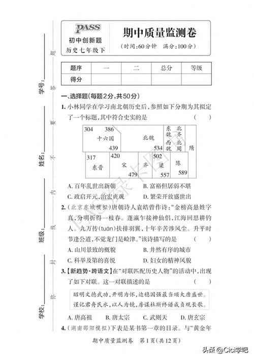 七下历史期中试卷(人教版,选自《学霸创新题》)