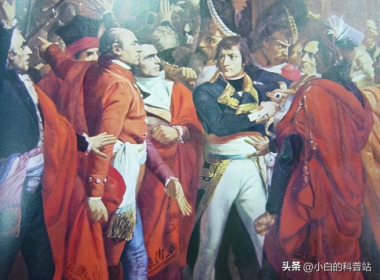 1799年法国陷入了内交外困的之中,在远征埃及的拿破仑敏锐的感知到危机,于10月离开远征军,只带少数随行人员偷偷离开埃及,星夜赶回巴黎。