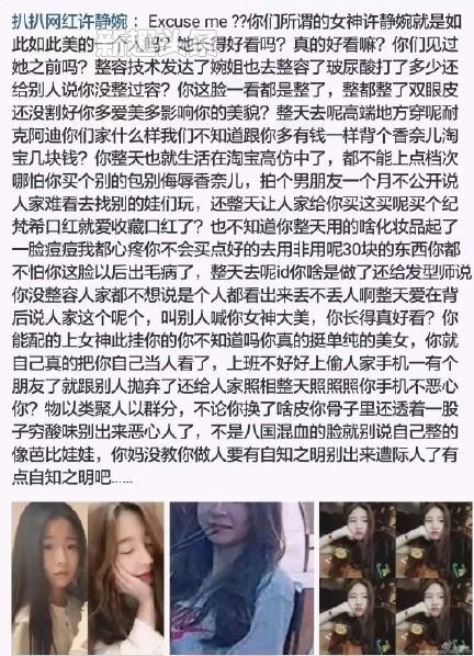 但是你这什么所谓的扒皮,明明就是一个傻老娘们在嫉妒人家成网红了吧。谈几个男朋友花多少钱跟你有屁关系,这点事就扒皮?这位扒她的是有不共戴天之仇吗?