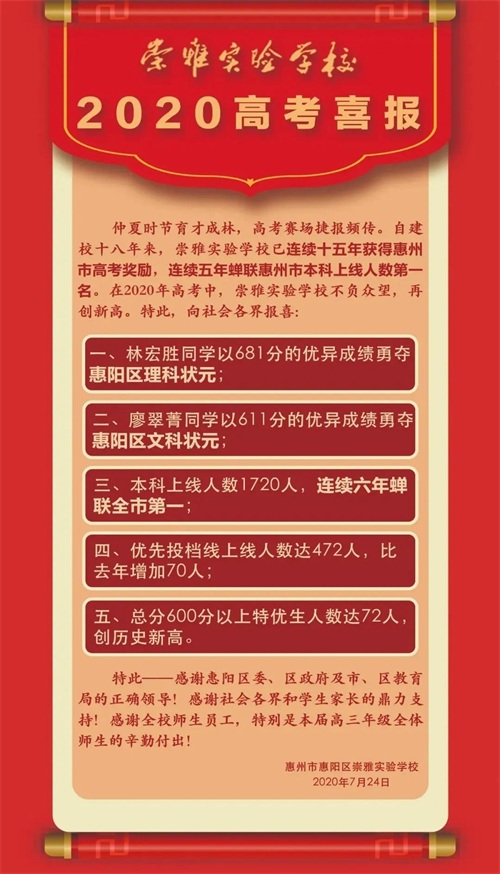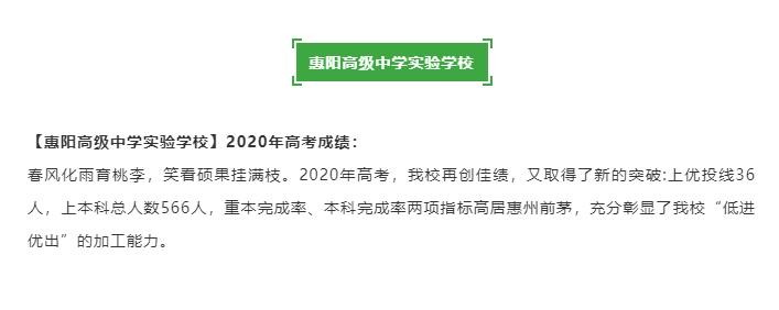2020年惠州惠阳区各中学高考喜报!中山崇雅实验一中高级共创历史
