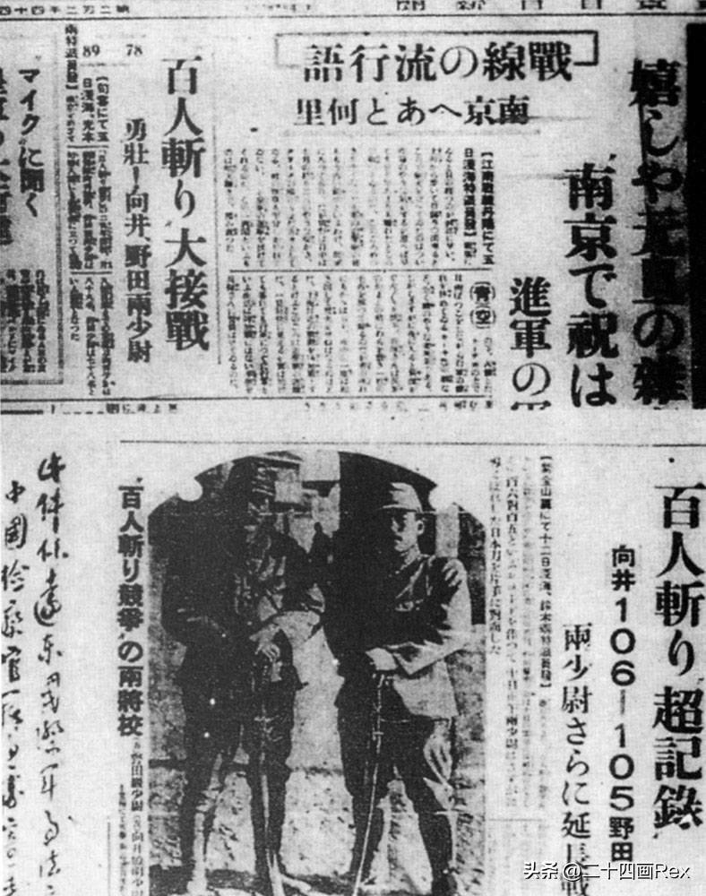 日本媒体争相报道了军方在南京附近的杀人竞赛。日本陆军少尉向井敏明和野田毅