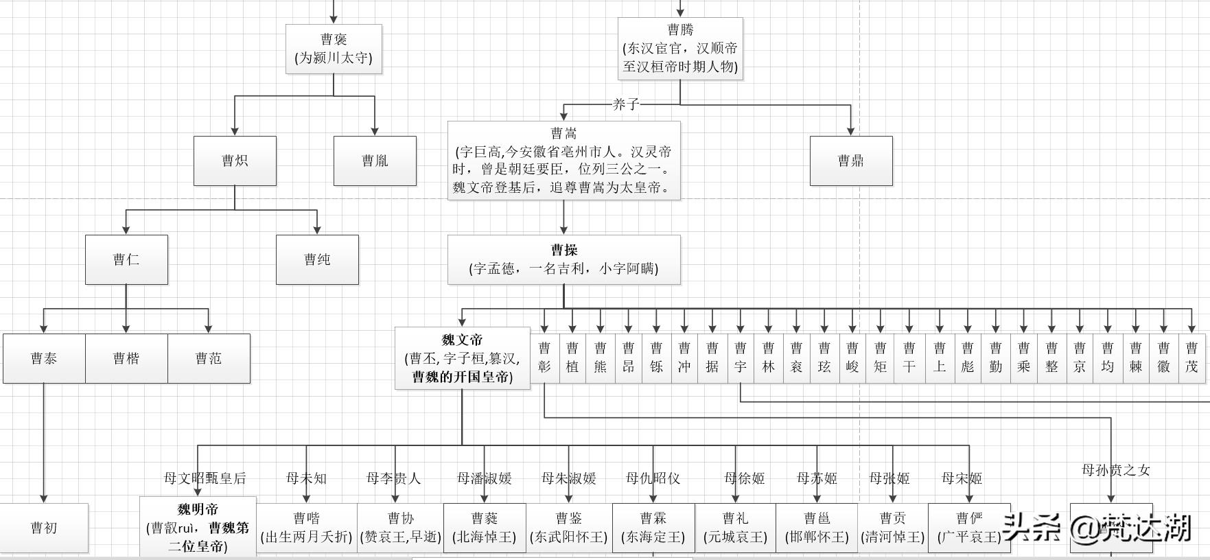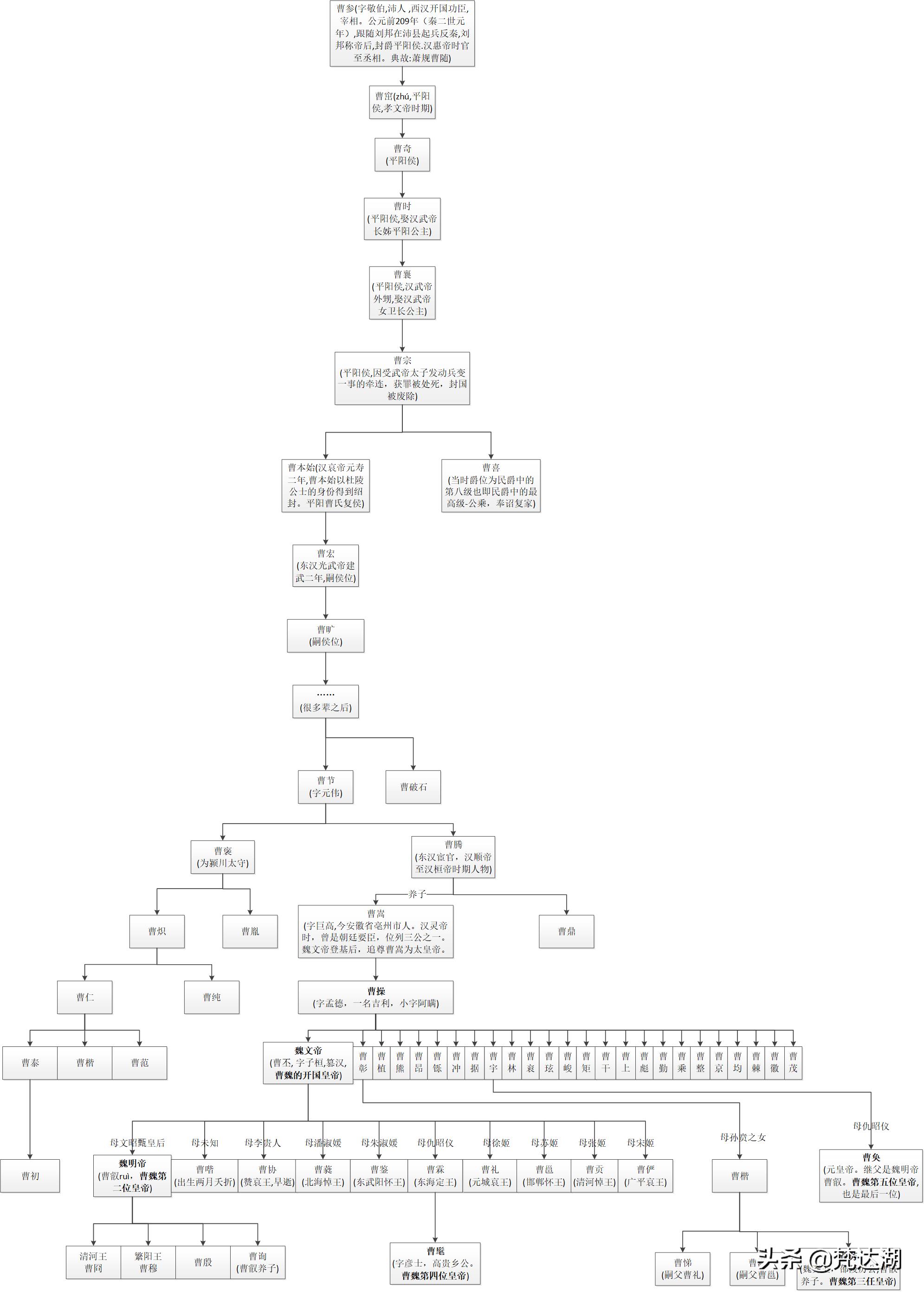 下图中,详细绘制出了三国曹魏皇帝及其后代世系图谱,由于移动端无法查看完整版高清大图,如需,请留言,公诸同好。