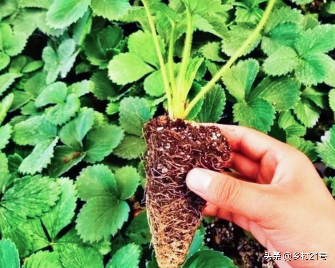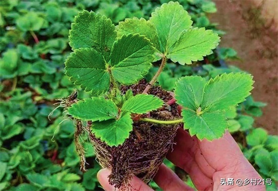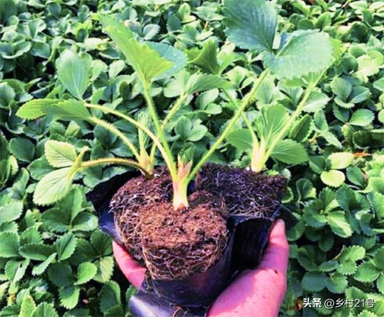 我给草莓育苗的时候,一般都会用育苗袋育苗,这样,我们移栽草莓苗的时候,可以轻松脱掉育苗袋而不伤根系;如果是直接在一块地中育苗的,我们在移栽幼苗的时候,需要带土挖出来,尽量不要伤及草莓幼苗的根系。