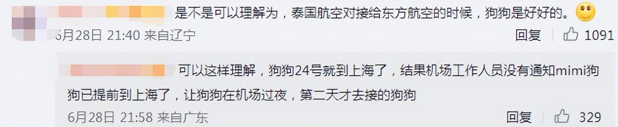 工作室还公布了他们还原出的大致事情经过,在手续齐全的情况下,6月24日李紫婷的父母将小狗送上航班,10:40从泰国出发,15:49到达浦东机场。航班入境后,由泰航转交至东航进行地面对接、转运、根据防疫政策进行防疫消杀等工作。