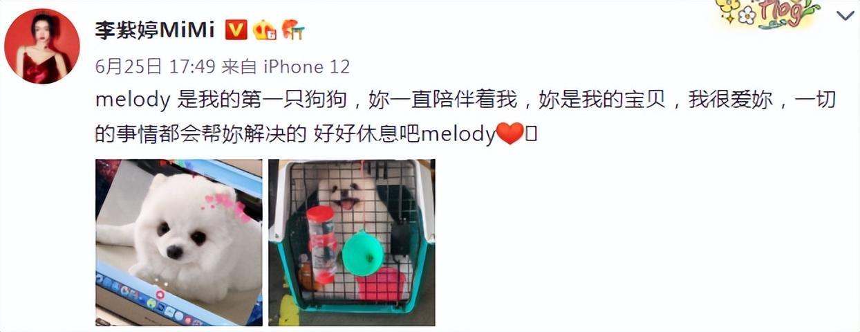 一开始是在6月25日,李紫婷先发了条“好好休息吧melody”的微博,告别了她养的第一只小狗,文案中还提到“一切事情都会帮你解决的”。