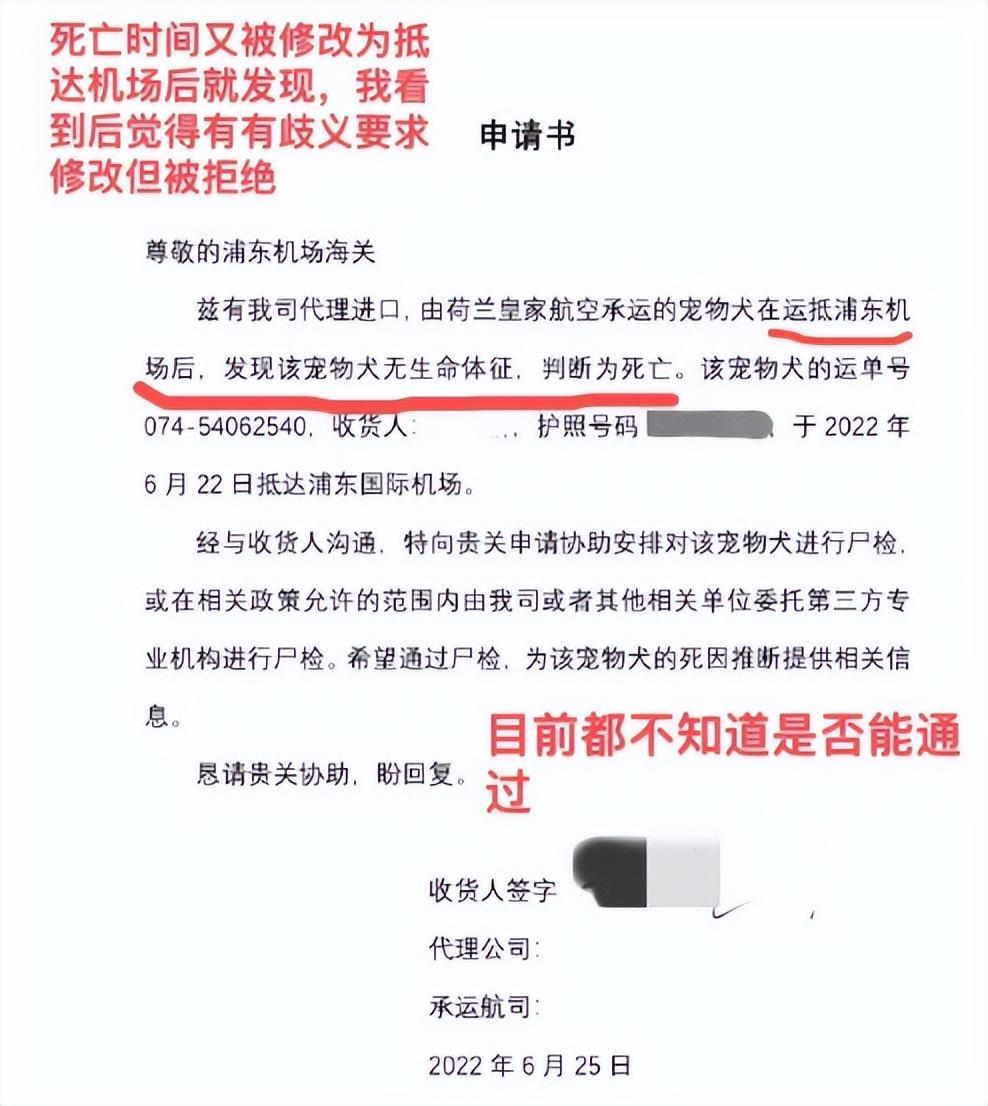 她只希望荷兰航空公司、东航货运站、中介及机场能给她一个真相,但却并没有得到回复。甚至小狗的死亡时间都被人为修改过,她提出异议却被驳回,想要申请尸检都不知道能不能通过。