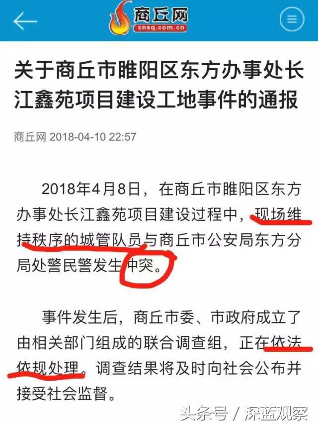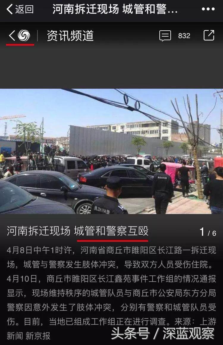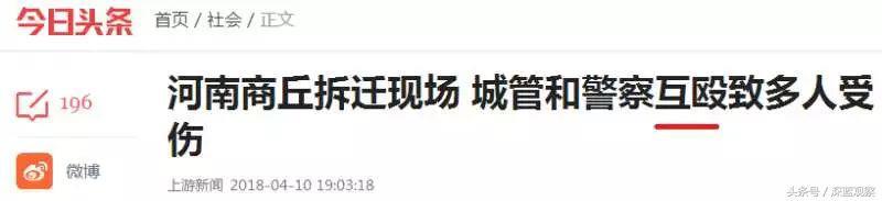 4月8日,河南商丘百余城管在没有拆迁令的情况下,欲强拆房屋,群众报警。警察在出警过程中,城管怀疑民警用手机拍现场视频,上前抢手机,双方发生冲突。