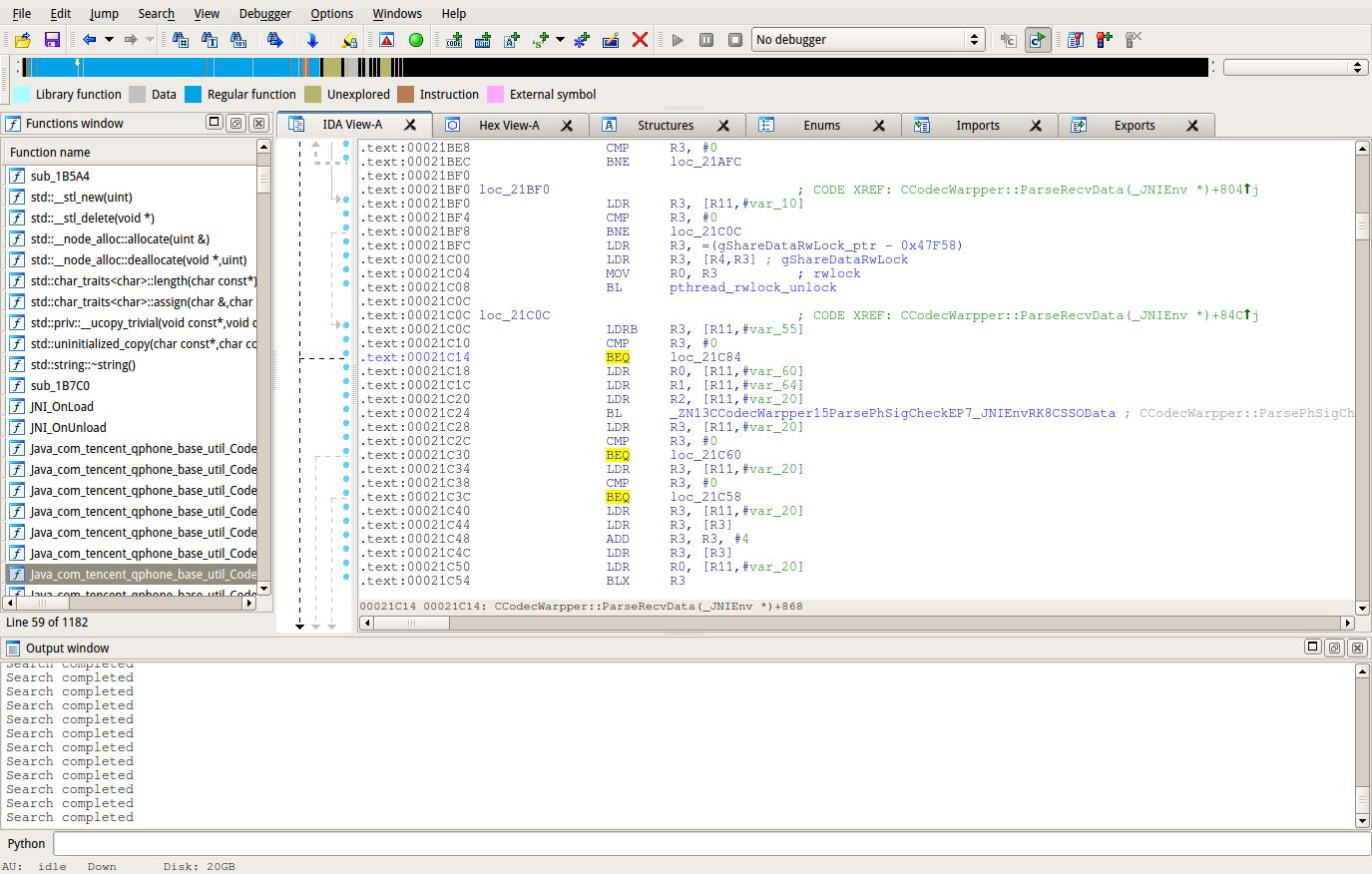 即:text:00021C14 BEQ loc_21C84 这一句指令,意思是说如果满足条件即跳转,那么我们的思路来了,将其换成不满足条件即跳转即可,也就是将 BEQ 换成 BNE。接着我们用Ultraedit打开libcodecwrapperV2.so,找到00021C14 这一行,有过一点Arm汇编知识的就可以看出来了。此处 “0a00001a” 即为BEQ的机器码,换成BNE只要将其改为“1a00001a” 即可。