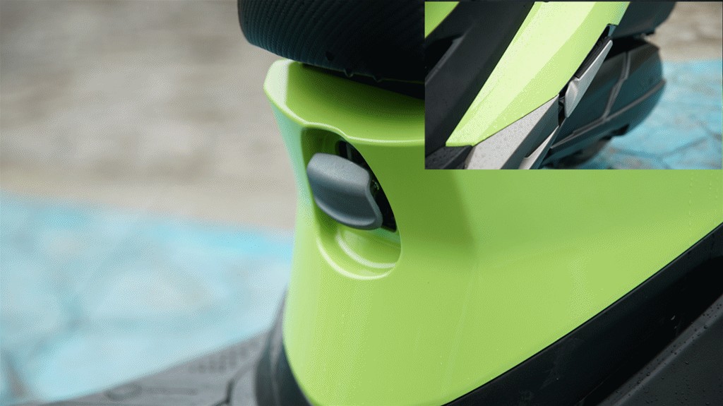 后脚踏也有很贴心的升级,通过座垫下方的拉杆可以快捷地同时释放两侧后脚踏。带小姐姐时再也不用来回弯腰开启脚踏,手指一扣轻松搞定。