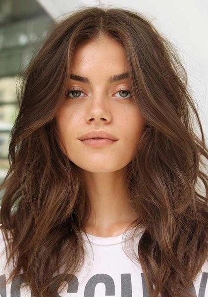 6,中分中长款烫发:自然的发卷下垂遮盖两侧面部,时尚,浪漫。