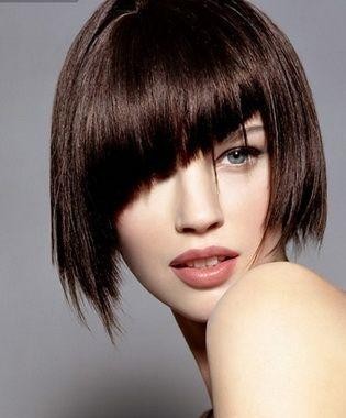 3,斜刘海波波头,发尾剪成碎发,自然,时尚,两侧头发自然下垂的巧妙的改善面部线条。