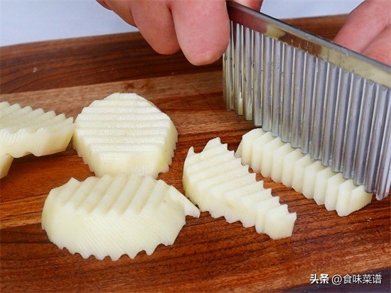 1、准备3-4个土豆,刮掉外皮,清洗干净,在购物平台就能买到这种专门切琅琊土豆的小刀,价格不贵,也就几块钱,把土豆都切成条。