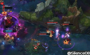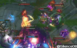 双方在大龙旁进行了一波激烈的战斗,女枪的输出也是相当可观,大招先将对方莫甘娜成功击杀,再将对方寒冰人头拿下