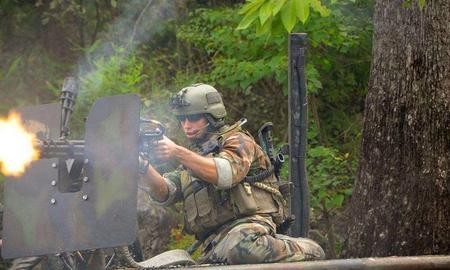 命悬一线的战友、张狂无比携带重火力的恐怖分子,眼看几名特种部队战士就要牺牲之际,勇敢的舟艇部队战友及时赶到,极速飞驰的快艇从热带丛林河中猛然窜出,狂暴的加特林火舌瞬间将恐怖分子覆盖,缓慢的升格镜头将水花、子弹火舌、子弹轨道、弹壳轨迹刻画的分外清晰,看得人一身鸡皮疙瘩......