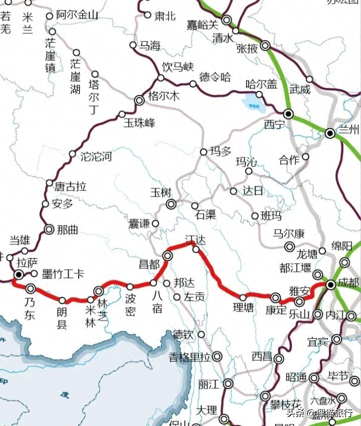 其实通往西藏的铁路未来还会有甘藏铁路,这条线路从甘肃兰州至西藏拉萨,相对其他线路来说,甘藏铁路受到的关注较少。