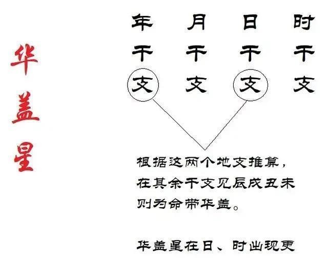 华盖,是干支的一种特殊组合方式,在前面的神杀部分已作了介绍,这里我们再来简单地回顾一下。