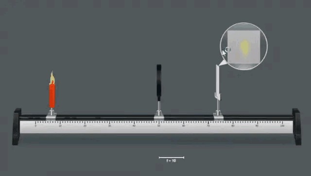 ⑴实验时点燃蜡烛,使烛焰、凸透镜、光屏的中心大致在同一直线、同一高度,目的是:使烛焰的像成在光屏中央。