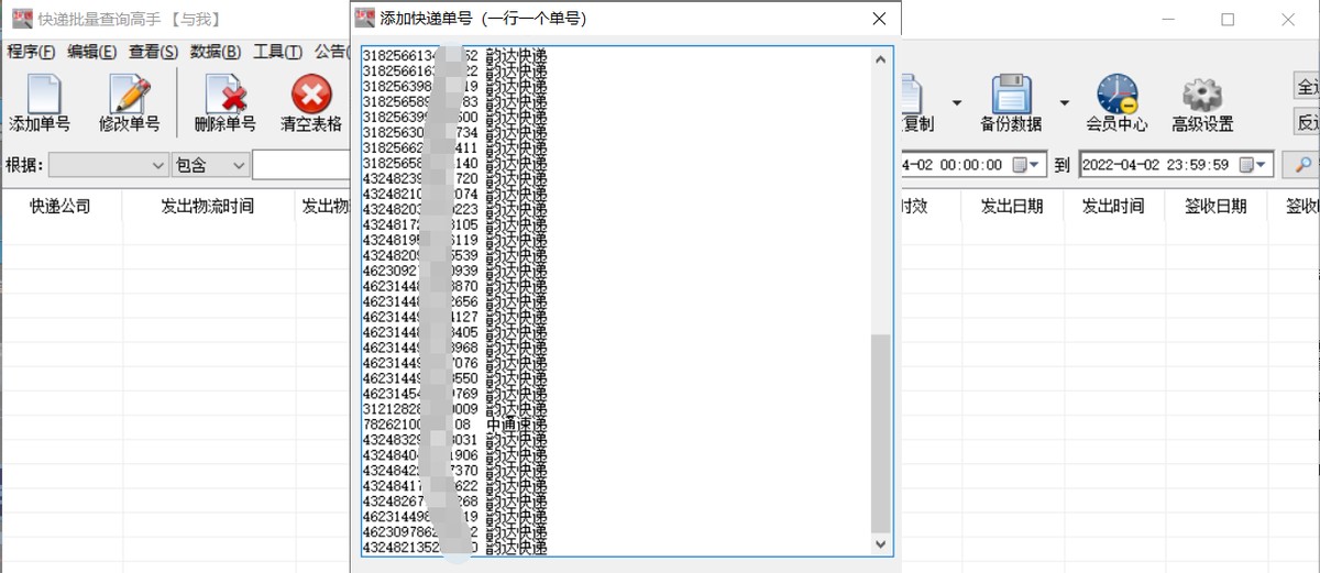 ”功能上,将单号导入,多个单号,可以一行一个