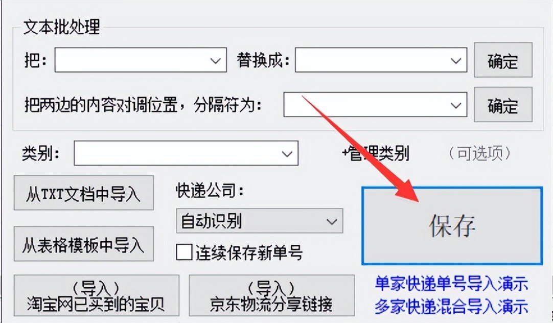 确定导入完成,不需要选择快递单号,单击右下角的这个保存按钮