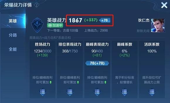 巅峰表现分是只有你用本命英雄去打巅峰赛才会加的