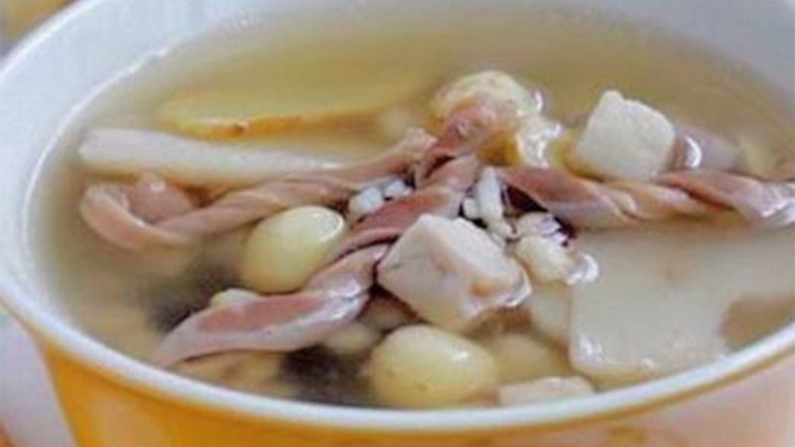 辅料:淮山30克、芡实30克、薏米30克、白果5个、生姜4片、蜜枣5枚