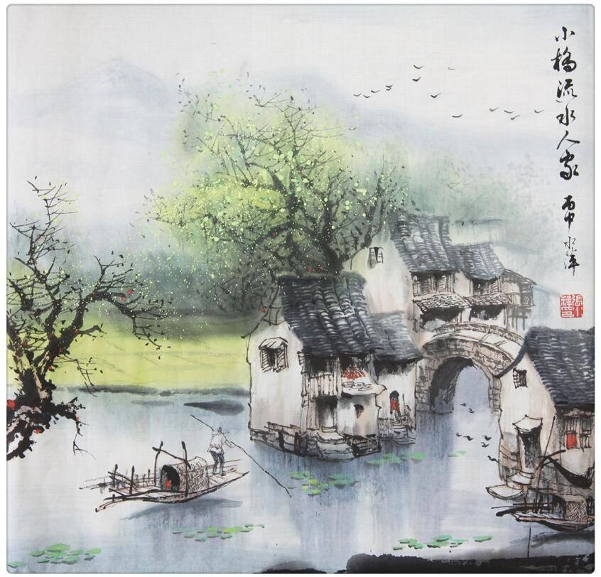 "小桥"、"流水"、"人家",作者选取一组典型的江南水乡的村居场景,有声有色的构成一幅富有生活气息的画面。