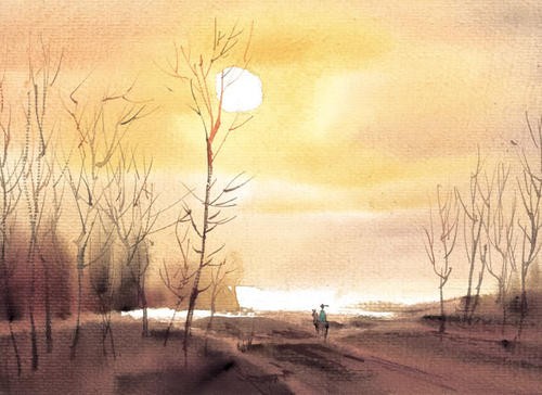枯藤老树昏鸦,小桥流水人家,古道西风瘦马。夕阳西下,断肠人在天涯。