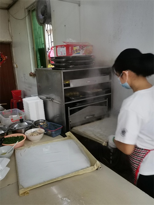 7、从蒸笼中取出肠粉。