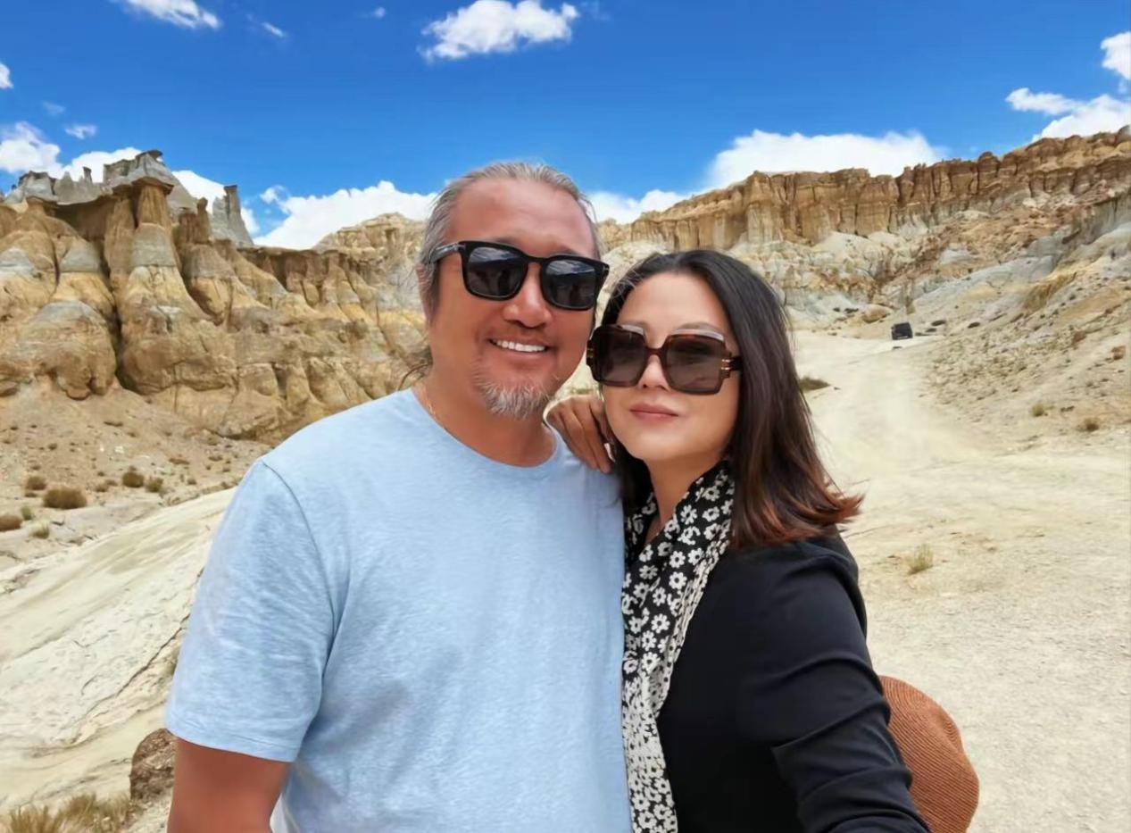 而且从照片中能看出她瘦了不少,都有点锥子脸的意思了,反观她的老公则留着胡渣,头发花白,发际线也是有些上移了,眼角处的皱纹也是非常明显,不过却遮掩不住帅气,有一种文艺的感觉,而且王茜华也是搂住了老公的手臂,对着镜头笔芯,夫妻俩露出幸福的微笑。