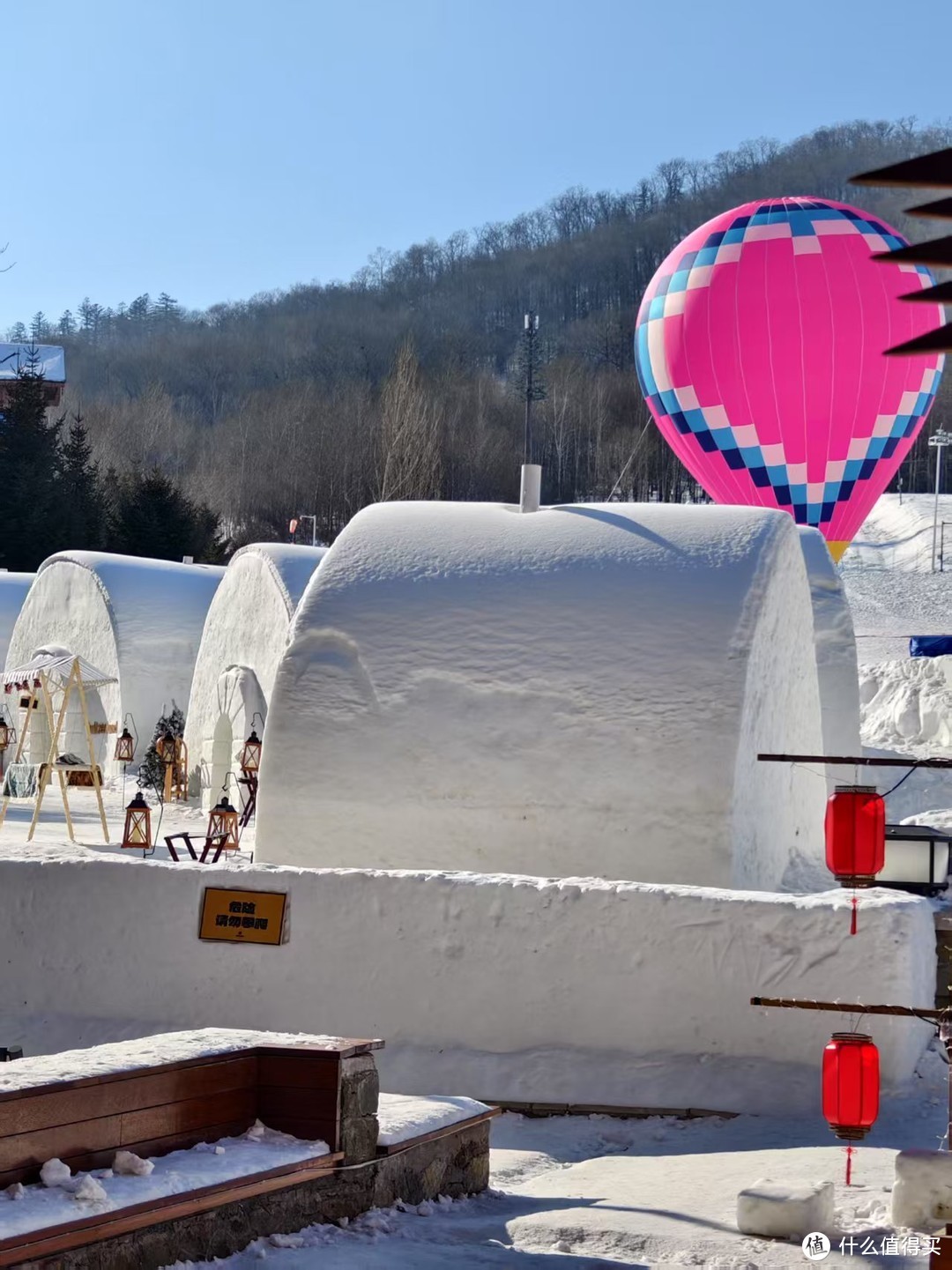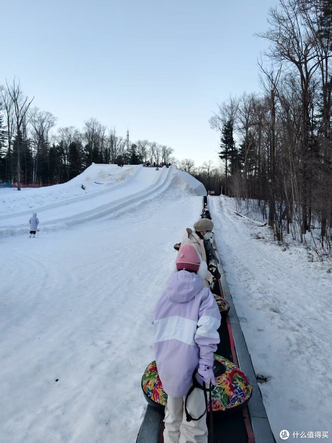 最好玩的,我觉得还是套餐权益里送的免费项目,超级大雪坡。自己提着雪圈,坐魔毯上去滑下来,有三个不同的雪道,有一个要求是两个雪圈联在一起滑的,更有意思。