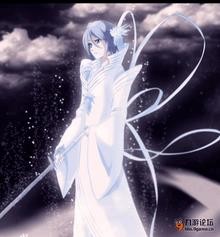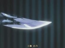 此时会从刀尖喷射出大量寒气,寒气所过之处将被冻结,此招的射程极广,可穿越空间逹半里,威力高于"初舞·月白"。(动画初次登场140集)