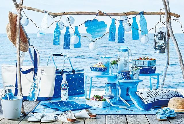 可尔必思2017年推出的家居系列联名是波点设计延伸的极佳例子,通过与Afernoon Tea 联名合作,可尔必思推出了系列品牌衍生品,简单的夏日短T、可尔必思样式的抱枕、向瓶内倒水就会有透明的蓝色升起的玻璃水壶等,系列单品多达90余件,每一件单品都采用经典的蓝白配色和波点图案,带有可尔必思的强烈的品牌归属感。[5]