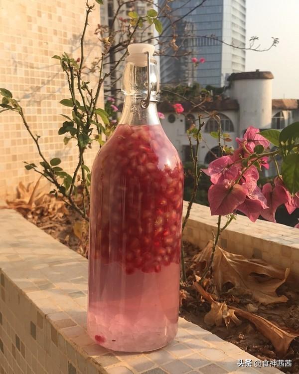 (2)弄破让石榴汁液出来 。但是不能用搅拌机打碎,里面籽碎了会影响酒的口感。然后一起装瓶开始第一次发酵,不要用完全密封的瓶子,装7分满