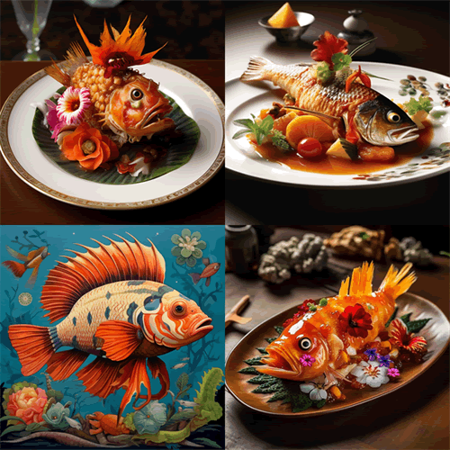 这次出的图中,除了第三张图,其它的都是正儿八经的中式菜,也确实能称得上是松鼠鳜鱼,而且出图的效果也很棒。