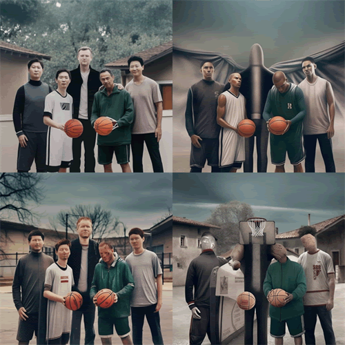 不过咱们可别忘了,我们后续还是能微调画面的,于是我让它把图二中的篮球换成足球,然后还要在后面画一个篮球架。