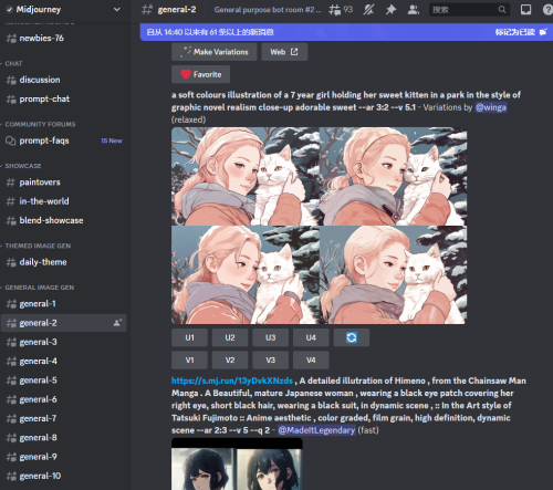 然后我又来到中文版 Midjourney 这,还是一样的描述给到它。